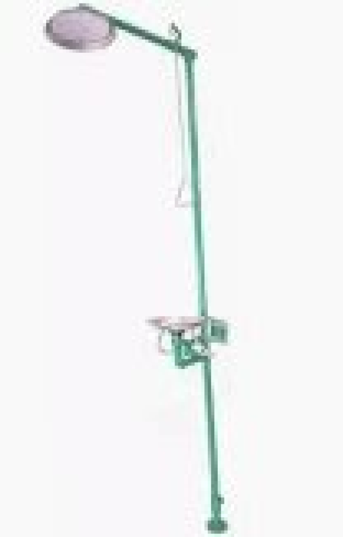 CHUVEIRO LAVA OLHOS DE EMERGENCIA EM ACO INOX C/ ACIONAMENO MANUAL E FIXACAO NO PISO