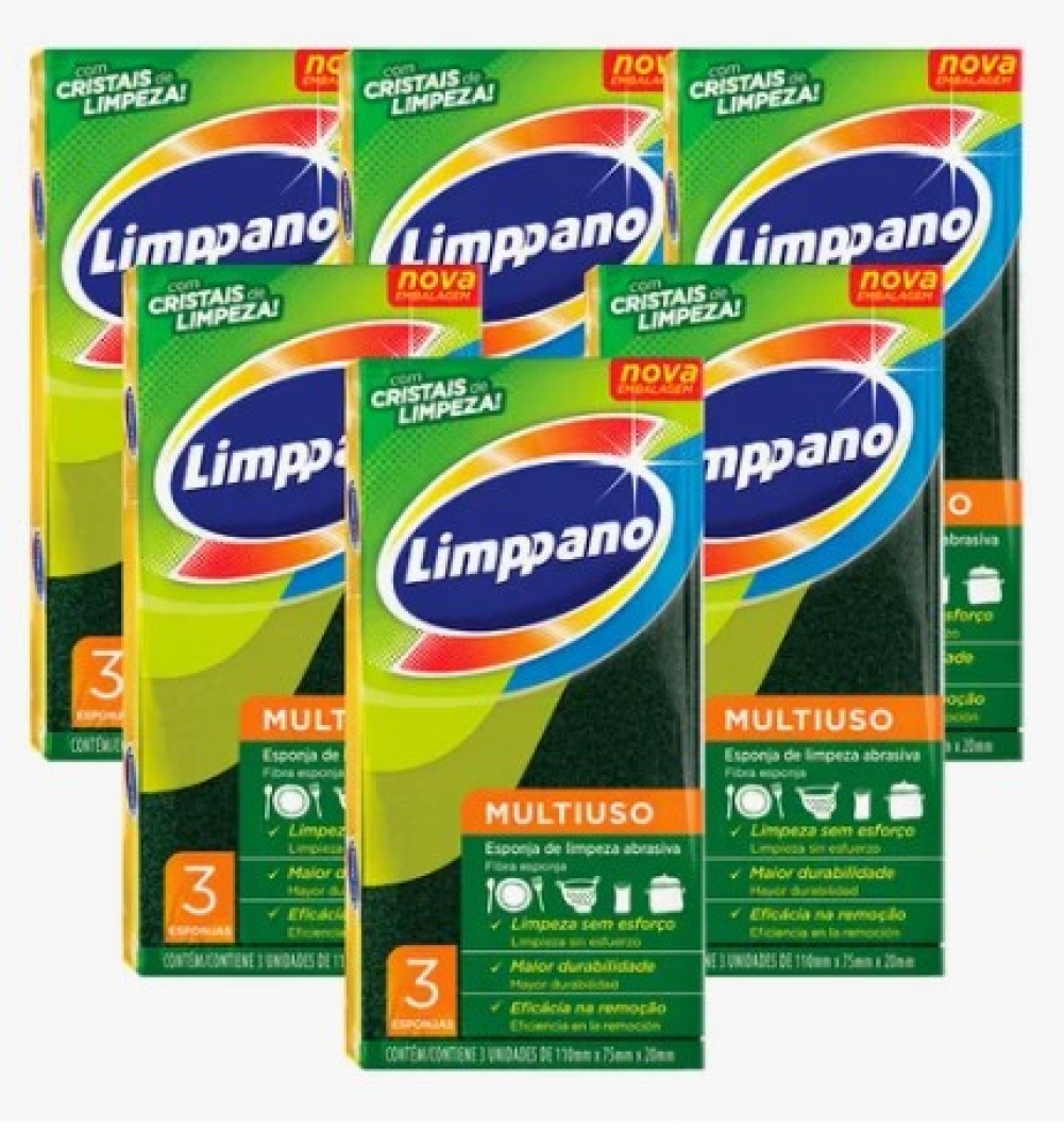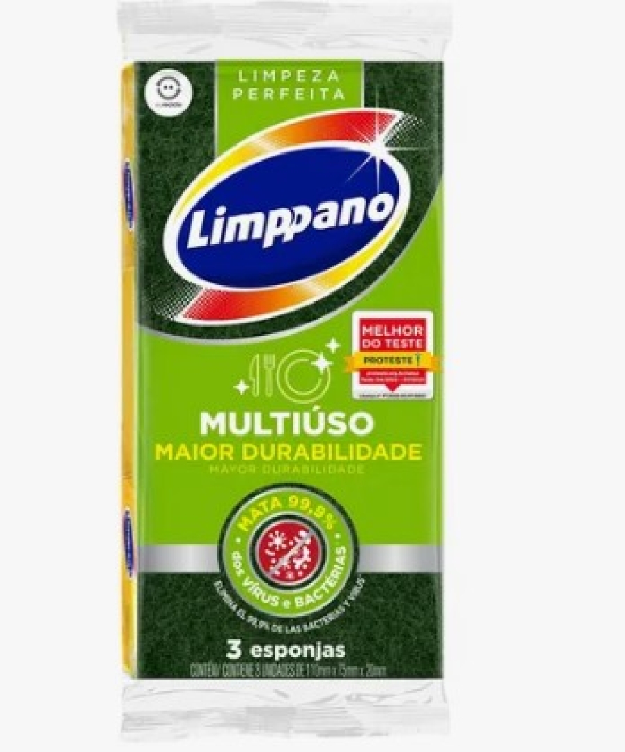 A Esponja de Limpeza Multiuso Limppano tem 2 lados: um remove a sujeira e gorduras mais difíceis (parte verde) e o outro pode ser utilizado nas superfícies mais delicadas.Utilize a parte verde da esponja de limpeza nas partes de sujeiras mais pesadas. A parte amarela da esponja deve ser usada em utensílios mais delicados.
