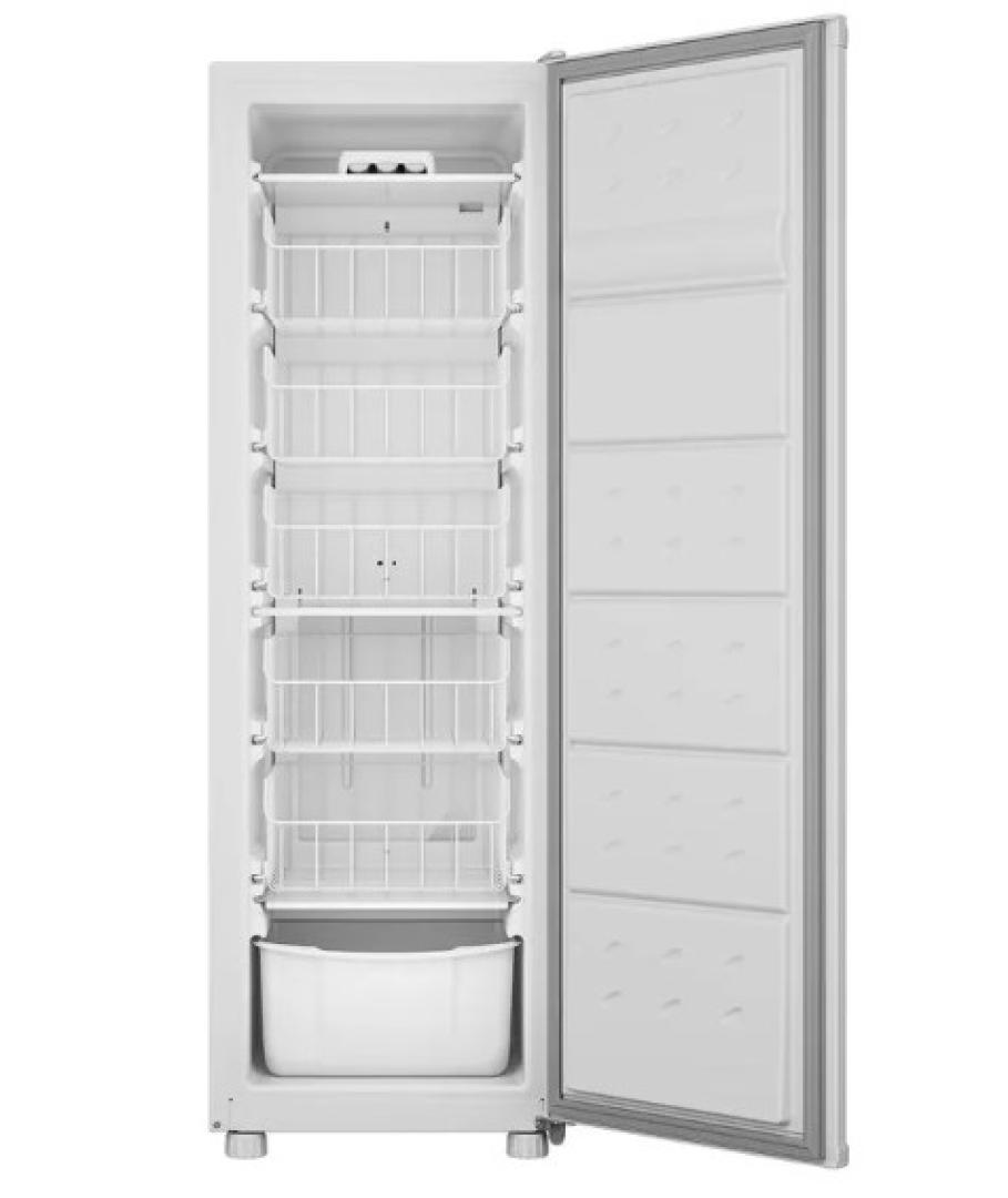 O FREEZER VERTICAL CONSUL TEM CAPACIDADE DE 142 LITROS, É COMPACTO E VAI CABER CERTINHO NA SUA COZINHA. TEM COMPARTIMENTOS DE SOBRA PARA O QUE VOCÊ QUISER CONSERVAR, TUDO COM LUGAR CERTO COMO GELO, PICOLÉS E FRUTOS DO MAR, QUE TEM ATÉ UM GAVETÃO ESPECIAL. E PARA FACILITAR PARA VOCÊ TEM TAMBÉM CESTOS DESLIZANTES. MAIS ESPAÇO PARA CONGELADOS O FREEZER VERTICAL CONSUL DE 142 LITROS É ÓTIMO PARA QUEM BUSCA UM ESPAÇO EXTRA PARA GUARDAR OS CONGELADOS. É COMPACTO E O ESPAÇO INTERNO BEM DIVIDIDO EM COMPARTIMENTOS ESPECIAIS. PERFEITO PARA CONSERVAR SEUS ALIMENTOS COMO VOCÊ QUISER! GELO E PICOLÉS SEMPRE GELADOS SE DEPENDER DESTE FREEZER CONSUL GELO E PICOLÉS DERRETIDOS NUNCA MAIS! ELE TEM UM COMPARTIMENTO ESPECIAL DE CONGELAMENTO RÁPIDO COM TAMANHO PERFEITO PARA GELOS, PICOLÉS E EMBALAGENS PEQUENAS. PRATELEIRA DO PRATO PRONTO ESTE FREEZER CONTA COM UMA GAVETA PRÓPRIA PARA VOCÊ GUARDAR AS REFEIÇÕES CONGELADAS AO ALCANCE DAS MÃOS. PRÁTICO, NÉ? GAVETÃO DE FRUTOS DO MAR SABE AQUELE CHEIRO DE PEIXE QUE PODE IMPREGNAR TUDO QUE ESTIVER NO FREEZER? VOCÊ NÃO VAI SENTIR NESTE FREEZER CONSUL! ELE TEM UM GAVETÃO DE FRUTOS DO MAR QUE FICA ISOLADO, EVITANDO ASSIM QUE OS ODORES SE ESPALHEM. CESTOS DESLIZANTES COM TRAVA DE SEGURANÇA OS 5 CESTOS DESLIZANTES SÃO FUNCIONAIS E TAMBÉM SEGUROS, POIS SUAS TRAVAS IMPEDEM QUE SAIAM DOS TRILHOS, EVITANDO ACIDENTES.Informações Adicionais