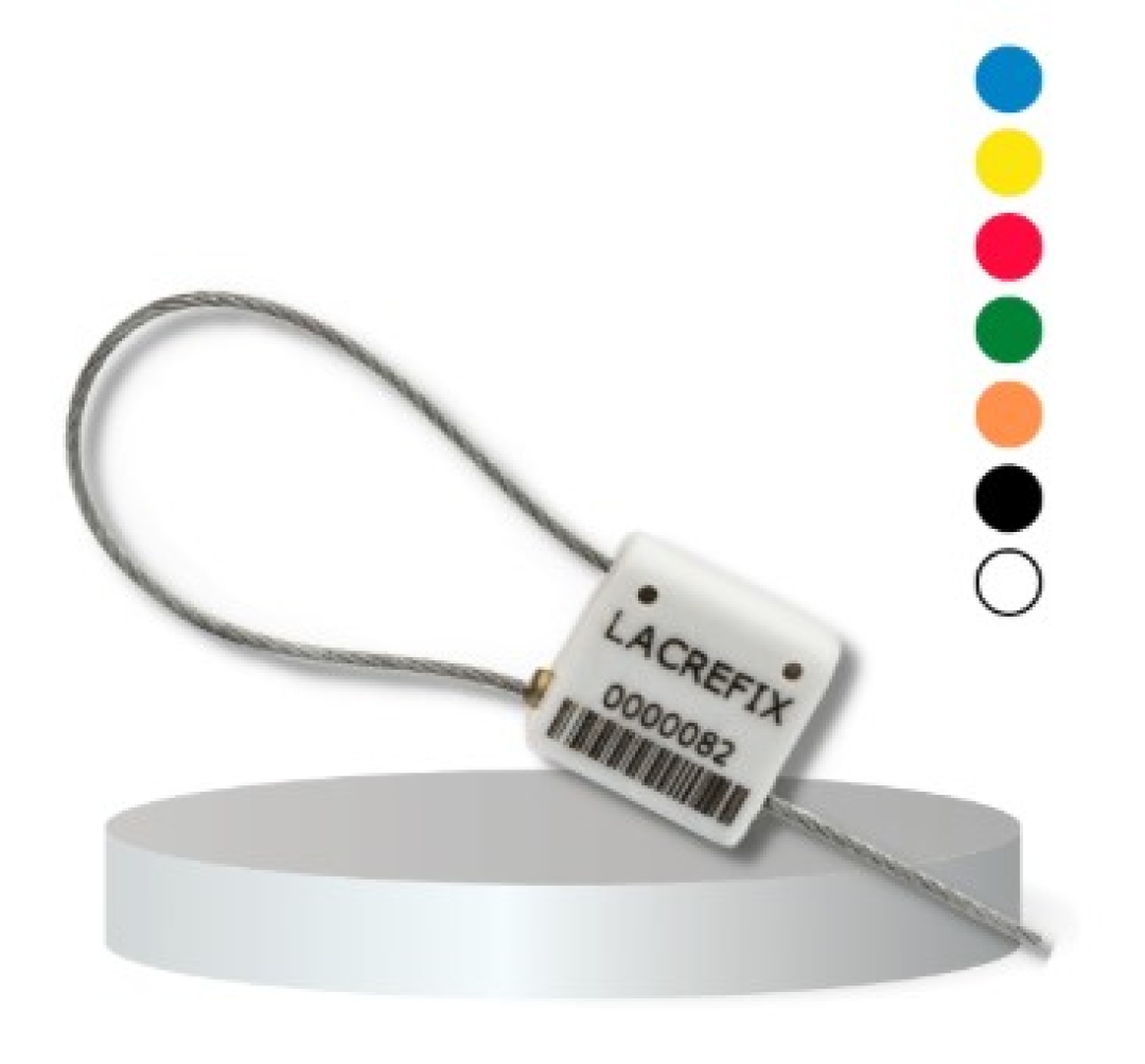 Lacre metálico ;p/proteção e lacre d/materias ;diâm 1,5mm xcomp 300mm ;cordoalha de AISI 304 ;amarelo