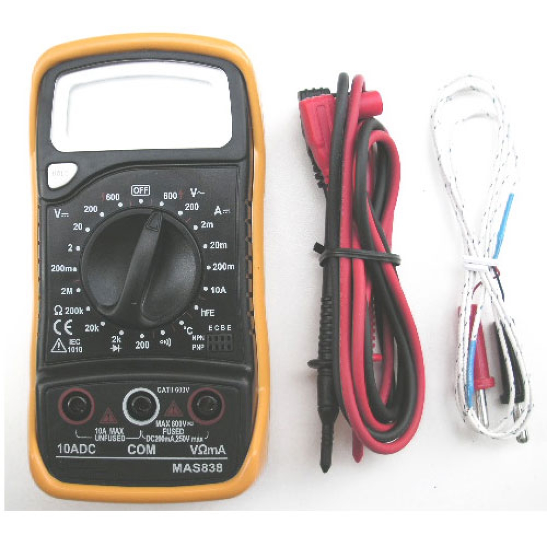 AUTO DESLIGAMENTO. - HOLSTER INJETADO - CAT II 600 V - CE - COMPARTIMENTO SEPARADO PARA FUSIVEL E BATERIA. - VIDA DA BATERIA: 500 HORAS - TENSAO DC: 0,2 M/2 V ± 0,5 %, 20/200/600 VOLTS ± 0,8 % - TENSAO AC: 200/600 VOLTS ± 1,5 % 3 - CORRENTE DC: 2/20 MA ± 1,0 %, 200 MA ± 2,0 %, 10 AMP ± 3,0 % - RESISTÊNCIA: 200/2K/20K/200K/2MO ± 1,0 % - TEMPERATURA: - 20°C À 0°C ± 10 %, 0°C À 400°C ± 1,0 %, 400°C À 1000°C ± 2,0 % - HFE: 1 ~ 1000 - ACOMPANHA: PONTA DE PROVA, HOLSTER DE PROTEÇAO, TERMOPAR TIPO K. - ALIMENTAÇAO: 1 BATERIA 9,0 VOLTS MAS-838 MULTIMETRO DIGITAL TBLACK COM TERMÔMETRO TAGS DE MAS-838: MAS-838, TESTADORES, MAS838, MAS 838, FERRAMENTAS DE REDE, FERRAMENTAS PARA REDEInformações Adicionais
