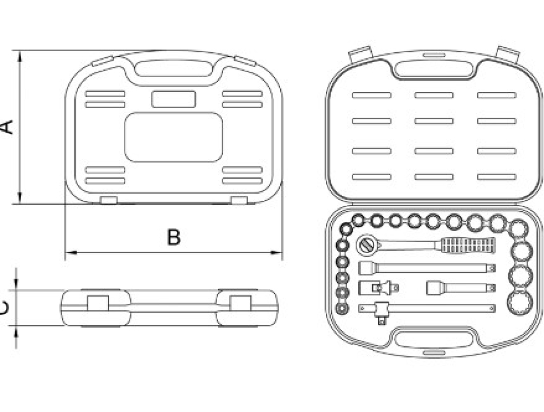 SOQUETE ESTRIADO 1/2" JOGO DE 3/8 - 1.1/4" C/ 22 PCS