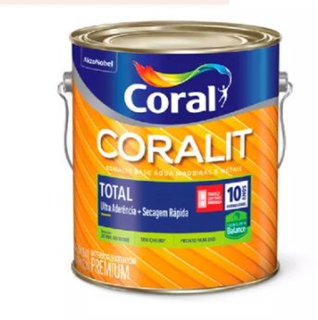 Tinta Esmalte Base Água Coral Coralit Total Brilhante Branco 3,6LCoralit Total é um esmalte base água de ultra aderência em multisuperfícies, isto é, possui alto desempenho em madeiras, metais ferrosos, alumínio, galvanizados, PVC e também em repintura. Sua fórmula especial Balance garante secagem rápida, sem cheiro* e branco puro por mais tempo, pois não amarela em ambientes internos e externos.